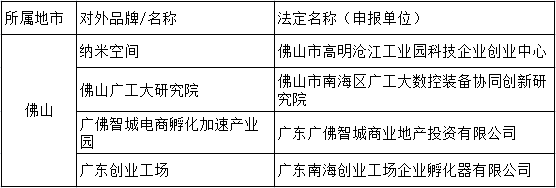 广东省2015年拟认定 国家级孵化器培育单位名单(佛山)